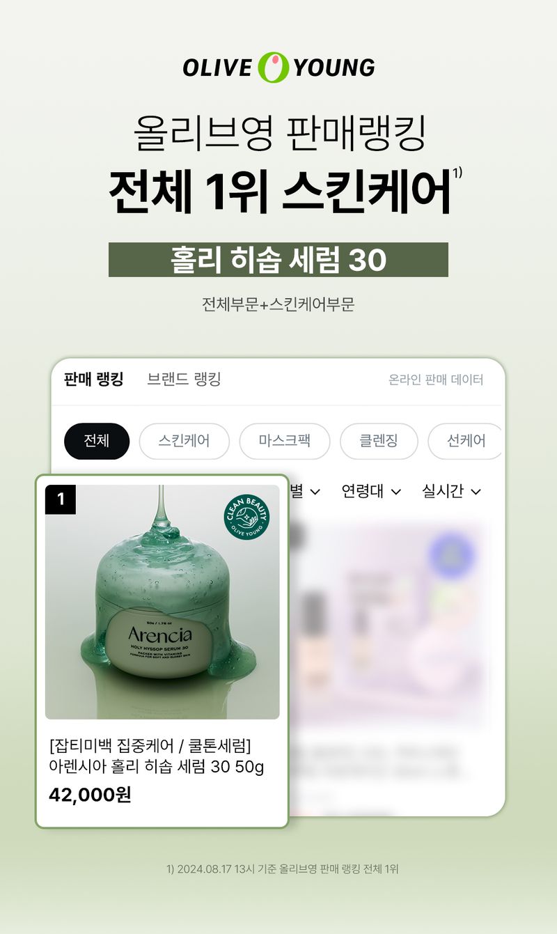 (24.10.01 ~ 24.10.31) Arencia Holy Hyssop Serum 30 聖牛膝草精華 30 120g (+ 清新綠色潔面乳 50g 特別套裝)